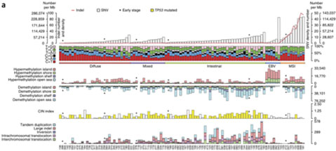 Bioinformatics analysis identified tumour-specific somatic mutations in known genes such as TP53, ARID1A, CDH1 and in a newly discovered gene MUC6. Mutations in driver genes were also found including CTNNA2, GLI3, and RNF43. The study also revealed that that 4.3% of RHOA mutations in diffuse tumors were closely related to the most common interference pathways (adhesion links and focal adhesions) in gastric cancer.